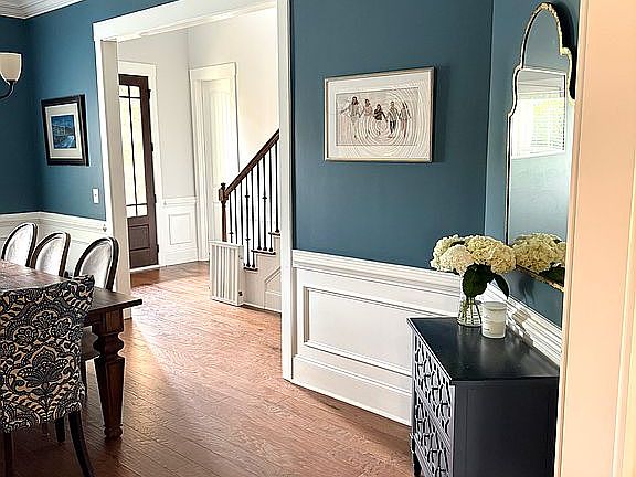 The first floor features soaring 10-foot ceilings, a dramatic 20-foot entryway, and a primary suite with hardwood flooring. Upstairs, you’ll find five generously sized bedrooms and a large bonus room perfect for a playroom, gym, or media space.