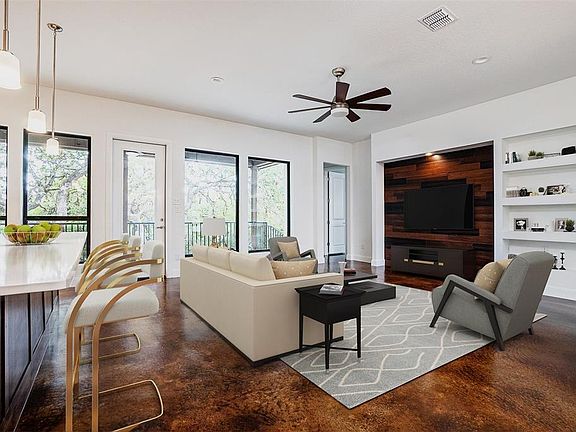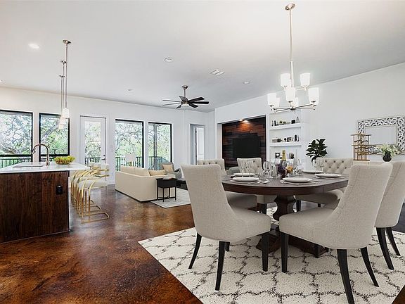 Brand new hill country home in Beautiful Mystic Shores!! NO CITY TAXES!! Newly designed open floor plan with a modern feel. Standard finishes to include custom walnut cabinets, granite/quartz counter tops,HUGE PANTRY, custom tile, stainless appliances and Stained Concrete! The exterior has a hill country look with stucco finishes. The large rear covered porch overlooks the tree covered one acre hill country lot. **Private porch off Master as well!**Desirable Comal ISD, 10 min to Canyon Lake and the Guadalupe River for all your water activities, easy commute to Austin, San Antonio, or New Braunfels for work or pleasure. Reasonable subdivision restrictions with mandatory HOA to help protect your investment. MOVE IN READY!!