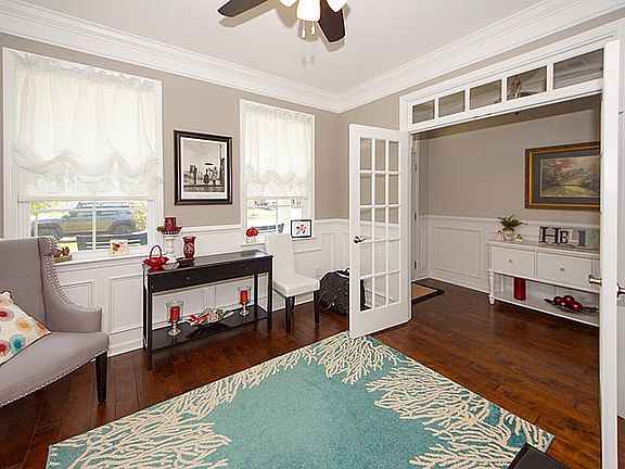 Absolutely gorgeous home! This is the Crescent Homes Mannington design with many, many builder and owner upgrades. From the front door you are greeted by gleaming wood floors. Off to the right are two glass paneled doors leading in to an office/living/ formal dining room. Making your way the den area you encounter a striking fireplace with shiplap detail. Also, in this open area floor plan there is a spacious kitchen area with granite countertops, gas range, EStar appliances and plenty of cabinet space. In addition to the living area, there is a sought-after bedroom and bathroom on the first floor. Arriving on the second floor you will see the large master bedroom with an elegant shower and walk in closet space. In addition to the master, two other bedrooms are upstairs,