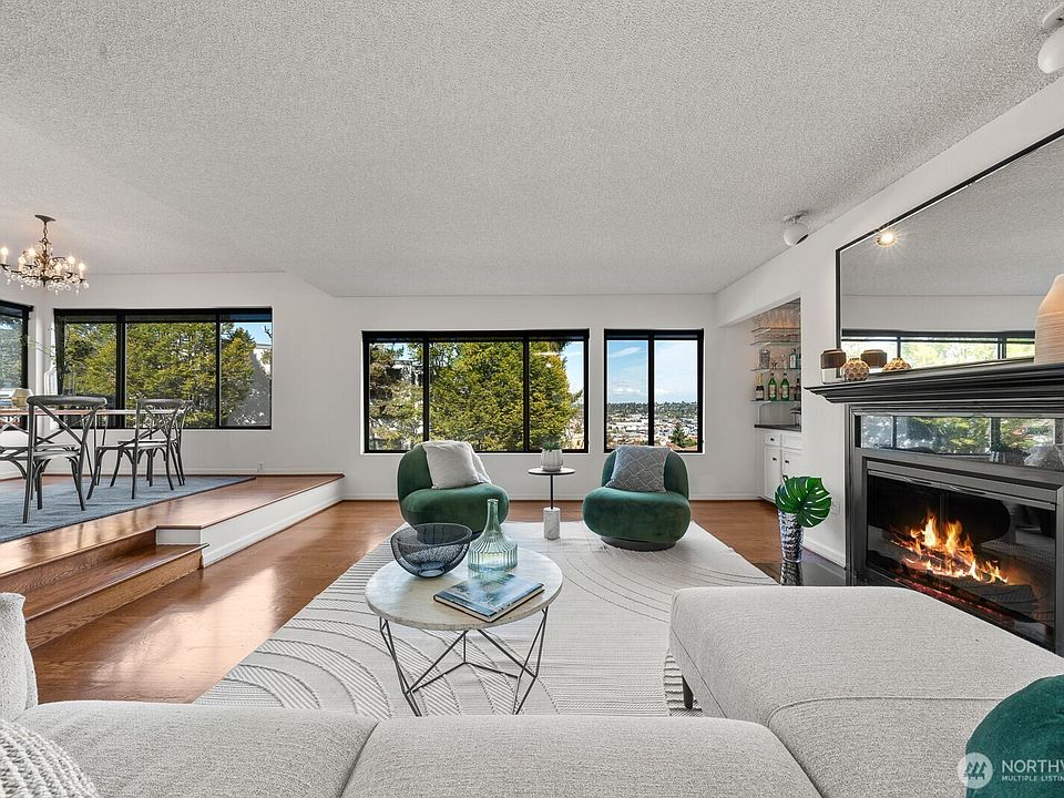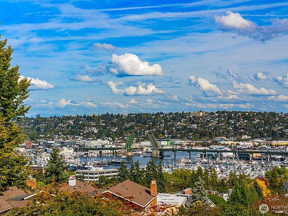 Where are you going to find 1800 SF on one level..... here, in this very sophisticated dream condo! Spacious living room, family room, dining room plus deck all with gorgeous views of the canal and the sparkling lights of Ballard, Phinney Ridge and Queen Anne. Lovely kitchen is open to family room and deck for ease of entertaining. There are 2 bedrooms and a good size office; the primary suite is huge with 3/4 bath and plenty of closet space. The washer and dryer are conveniently located in the hallway close to the primary bedroom. The large tandem 2 car garage has a storage room too. The complex has a clubhouse, pool, sauna, game and meeting room with kitchen. Designed by the James Paul Jones, known for his elegance, style and 70's flare!