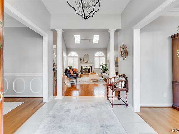 Gorgeous Transitional Home, custom-built by Mike Dumont in the sought after Wellesley community located in the heart of Short Pump! Situated in the award winning school district of Nuckols Farm, Pocahontas, and Godwin! This exquisite home is perfect for family living and entertaining, offering a first level primary bedroom with en suite, three additional expansive bedrooms on the 2nd level, 2800 sqft, and an incredible amount of walk-in storage! As you enter, you are greeted by an elegant foyer with columns, leading to a stunning great room with huge windows, skylights, vaulted ceiling and fireplace. Beautiful hardwood floors in the formal living and formal dining areas, with detailed mouldings, and large windows. Amazing chef's kitchen with tons of worktop space, includes white cabinets, granite countertops, NEW light fixtures (2024), SS appliances, NEW Stove (2024), NEW Refrigerator (2024 ), an eat-in area with a bright and sunny bay window leading to the deck. This home has been lovingly cared for by the same owners for the past 28 years. Recent updates include all New Interior Paints, New Kitchen floor, New Carpets, New 2nd Level HVAC with transferable warranty, New Fixtures throughout . Enjoy the Wellesley lifestyle with amenities that include a pool and swim team, walking trails, tennis courts, playgrounds, clubhouse, fitness center, lake & more! Great schools & only 5 minutes to Short Pump shops & restaurants! Come discover the beauty of this incredible home today!