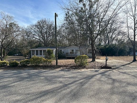 Mobile home one a fixed foundation in a quiet part of Dalzell. Home has a nice sized front and side porches, large living room with a fireplace, sun room, laundry room with a washer and dryer, nice kitchen with butcher block counters. The primary bedroom is very large and has an impressive bathroom attached. Close to Shaw AFB!