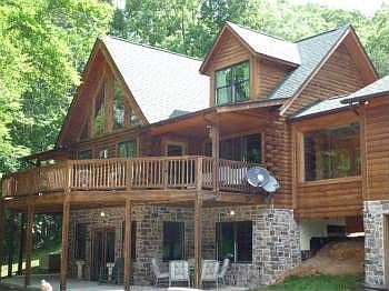 Beautiful log home privately situated on 6.5 acres. Meadow Creek runs thru the property offering lots of fun times! Open floor plan with giant vaulted ceilings lets the sunlight pour in. Abundance of living space with four bedrooms each having it's own private bathroom. Large basement with high ceiling has plenty of room to finish the way you want it. Exciting opportunity; priced below tax assessment.