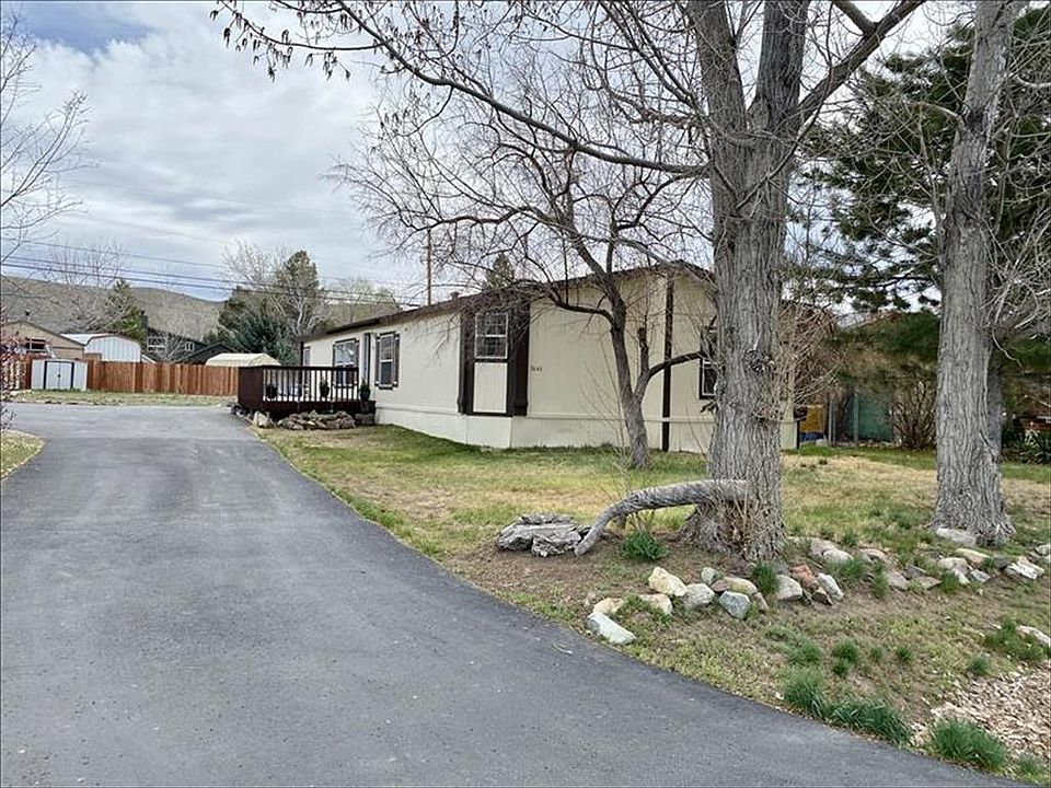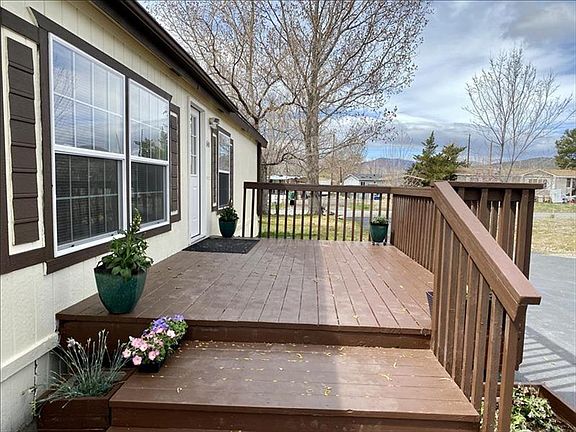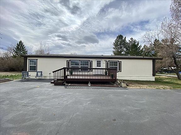Completely remodeled! Bright, open and airy floorplan. NEW roof, NEW laminate flooring throughout, everything is new in the bathrooms, master has a garden tub! NEW blinds and valances, NEW refrigerator and dishwasher, NEW kitchen countertops! NEW light fixtures! Front and back decks just painted with weatherproof paint. Large lot with a firepit, special garden area, storage shed, shade trees and lovely new flowers. New crossover ducting and damper under the home so heating disperses evenly. Move in ready!