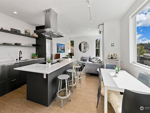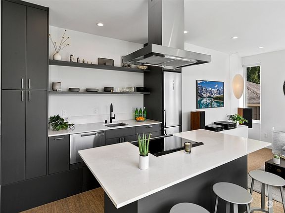 Join the vibrant, emerging Stone Way Micro-hood, on the cusp of Fremont and Wallingford where high tech meets big fun. Walk to Gasworks Park, bike on the Burke-Gilman trail, enjoy beers at Fremont Brewery, or climb at Seattle Bouldering Project. Stunning views of downtown Seattle, Space Needle and Mt. Rainier from bedroom and private rooftop deck. Light-filled euro-modern gem designed/created by award-winning builder and architect. Skylights flood interior w/ natural light. Quartz countertops, induction stove, custom cabinets, ductless mini-splits, & private street-level storage room (bikes & gear). Zero energy ready – pre-wired for solar. A true 21st Century home!