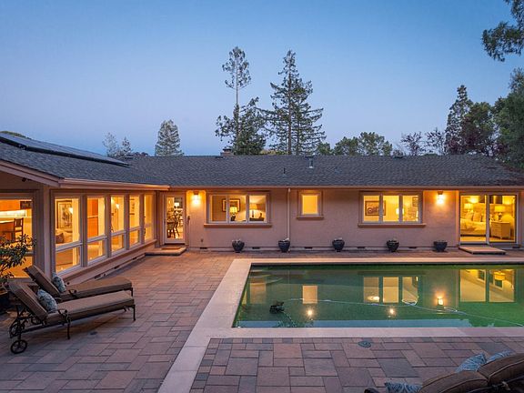 Beautiful One Level 4 Bedroom 3 Bath plus Office/Den home located in the Carolands area of Hillsborough. Open Living areas where Formal Living room and Dining room look through wall of windows to treetop views! Eat in Kitchen with Breakfast Bar and room for a large table for casual dining! Large Family room with fireplace, full size bar and entertainment center, overlooks spectacular private backyard with salt water pool and spa! One Bedroom and Bath with separate entrance. 2 car garage with Workshop and Laundry rooms. Convenient to 280, 101 and SFO. Sq ftg is approx.3,948 per seller after addition.. Buyer to verify.