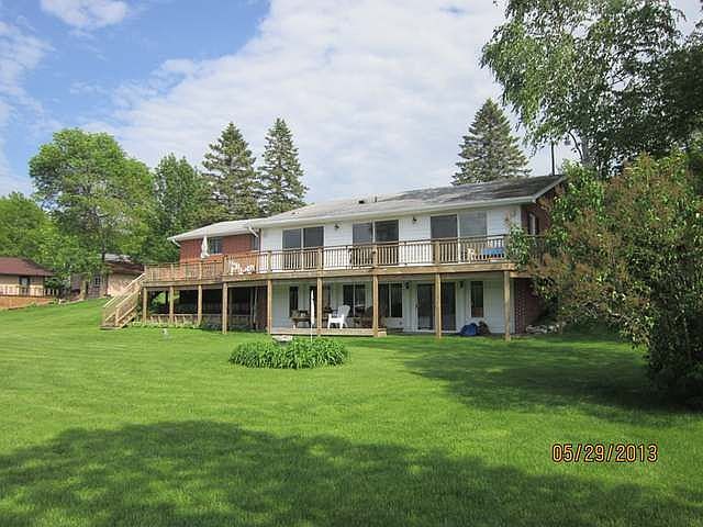 214 FEET MAIN WIXOM LAKE. Property has beach area and dock with large yard in front and back for those family gatherings. 3200 SQ.FT Raised Ranch, 3 bedroom, 2 bath, with finished walk out. Open floor plan with large living area on main level. Upper Sun room has three 8 ft sliders accessing a 60 foot wrap-around deck with fantastic views of the lake. Living room has French Doors to deck. Kitchen island is perfect set-up for large parties. Lower level has hobby/sewing room/utility room, family room, bath, bedroom, sun room & plenty of closets . Family room has a bar made of stone and marble and a fireplace. Lower Sun room has cedar lined closets and slider leading out to a covered deck. Many great views from all living areas of lake. Great home for entertaining that large family. Property consists of 2 lots, plenty of space and no neighbors on top of you. House is an excellent value for this amount of frontage on main waterway. Great boating and fishing, you can boat 5 miles up river or 10 miles down river.