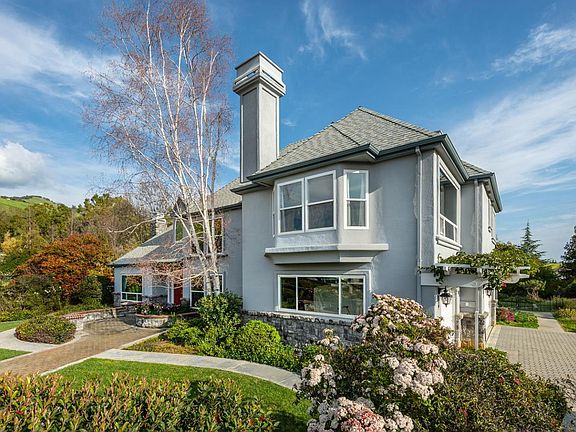 Stunning Evergreen area home crafted in the French Chateau style. On an acre in an enclave of 12 luxury homes in a rural setting, minutes from downtown San Jose. Jaw-dropping views from every room in the home. Magnificent formal entry. Grand staircase. Huge living room. Well-appointed office/5th bedroom. Fabulous kitchen with new granite counters and new appliances. Greatroom offers one of the great city lights views in the valley. Gorgeous formal dining room. 3 huge bedrooms (one en suite) plus a luxurious primary retreat occupy second floor. Primary includes 3 walk-in closets. Office or perfect guest quarters first floor. 2 climate zones. Gleaming hardwood floors on the first level. 4 baths including luxurious primary en suite with jetted tub and separate large shower. Great laundry room. 3-car garage. Expansive covered patio. Grounds offer formal landscape and meadowland. Fruit trees, raised garden beds. Open Sat/Sun.