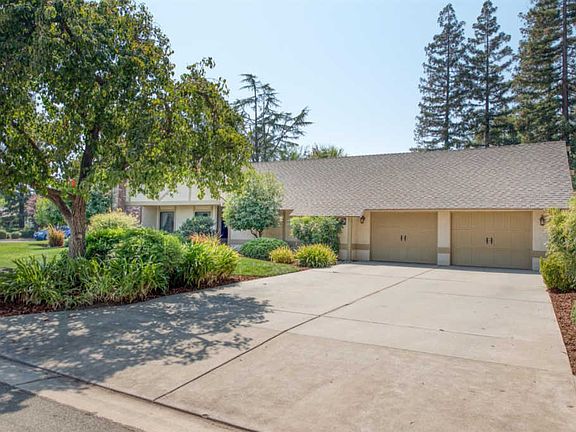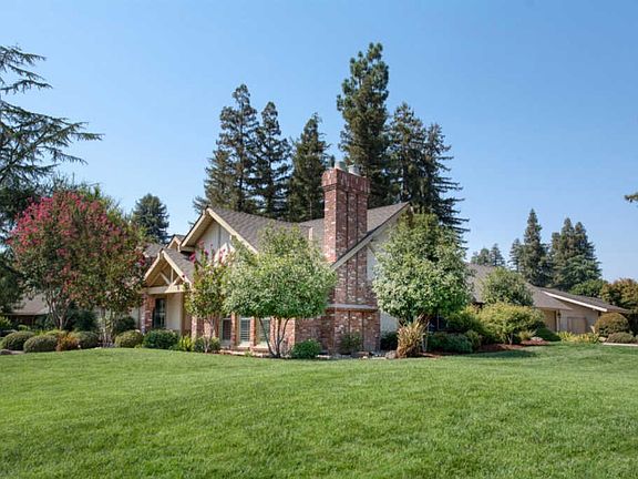 One of a kind family home situated near the prestigious San Joaquin Country Club on a huge corner lot! This well-maintained custom classic has an expansive floor plan of high ceilings, bright windows, and shows quality throughout. It is truly an entertainer's delight from its formal living room to the formal dining area, and the open family room with wet bar, soaring wood beam ceilings, and stunning brick fireplace with custom built-ins on both sides. The kitchen is a chef's dream with storage galore including a center island, built-in appliances, granite counter tops, eating area, and stellar views of the backyard. The well thought out floor plan boasts 4 bedrooms and 3 baths with a secluded bedroom & bathroom on the East side of the home. Retreat to your spacious master suite with adjoining bathroom featuring beautiful atrium, dual vanities, large walk-in closet, and relaxing soaker tub! Plus, enjoy private access and picturesque views of the yard. The backyard is a true oasis with covered patios, lush manicured landscaping, and stunning pool- the perfect place to host summer gatherings and relax! Both 2-car garage & laundry room boast abundant storage. This custom home feels warm and welcoming, a comfortable floor plan and yard- perfect for a family and great for entertaining kids and adults alike. Don't miss out on this wonderful home!