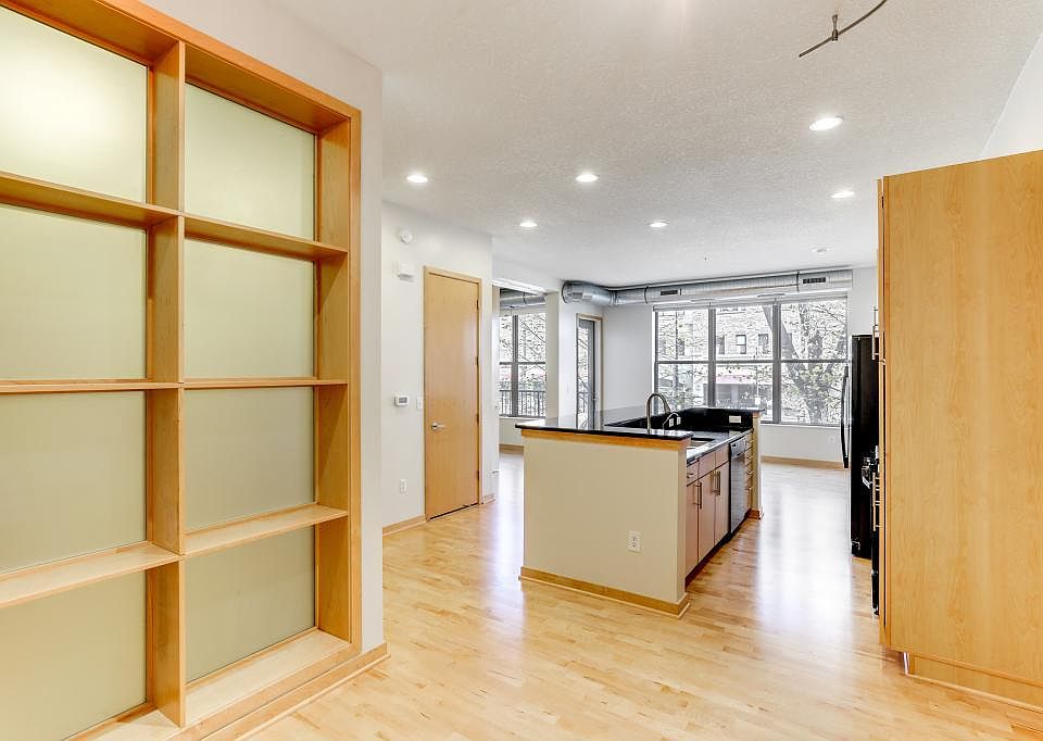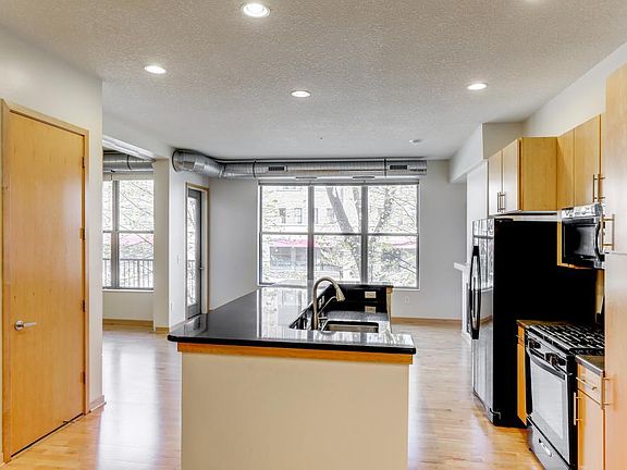 Beautiful main level loft style condo with soaring 10' ceilings, maple floors and millwork throughout, 9' granite center island, gas fireplace, front load washer /dryer. New gas range and fresh paint throughout. Easy access to major freeways. Cedar Lake Trail across 36th St links to downtown.