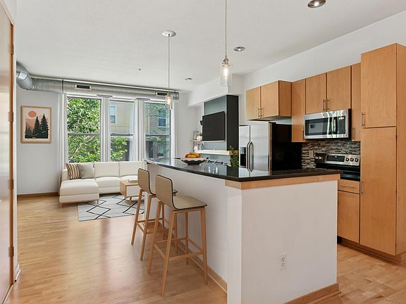 Welcome to Village in the Park Lofts, where style, comfort, and convenience meet in the heart of St.Louis Park! This main-level condo offers an exceptional layout that maximizes every inch of space. Theopen floor plan flows effortlessly from the kitchen with center island, to a cozy dining area, and into aspacious living room anchored by a beautiful gas fireplace. Enjoy south-facing light throughout the day,with views of the quiet courtyard framed by picturesque trees that add both charm and privacy. Stepoutside to your private balcony and soak in the serene setting—truly a rare find so close to the city.Thoughtful features include a Nest Smart Thermostat, LED lighting, water filtration, built-in surroundsound, and quality kitchen appliances (range, microwave, dishwasher), and a new compressor in the airconditioning unit. Exceptional storage is another highlight, with custom cabinetry and a generous amountof closet space not often found in city living. The unit also includes heated, secure underground parkingwith an upgraded raised steel locker for additional storage. Association dues cover fast fiber-opticinternet, making remote work or streaming a breeze. Location doesn’t get better—steps from the futureLight Rail station, with easy access to Hwy 100 & Hwy 7, shopping, dining, parks, and miles of Cedar LakeTrail. Just minutes to Downtown Minneapolis, Lake Bde Maka Ska, and Lake Harriet. Don’t miss this rare opportunity for a blend of convenience, modern updates, and everyday comfort!
