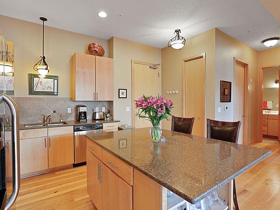 Meticulously cared for and rarely available unit at VIP Lofts (Only 9 out of 60 units are 2 bedroom/2 bathroom configuration)! Open concept, loft-style condo with 10' ceilings and fabulous location features hardwood floors, stainless steel appliances, an oversized kitchen island with storage on both sides, Master bedroom with private bathroom (separate tub and shower) + double closets. In-unit laundry with storage, natural woodwork and so much more! Garage stall #10. Additional free parking in the main lot by front entrance - rarely full. Lightrail construction underway just north of the property. Check w/ Metropolitan Council for more information on timing of completion, location of stations, etc. Seller cannot close until 8/10.