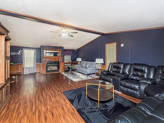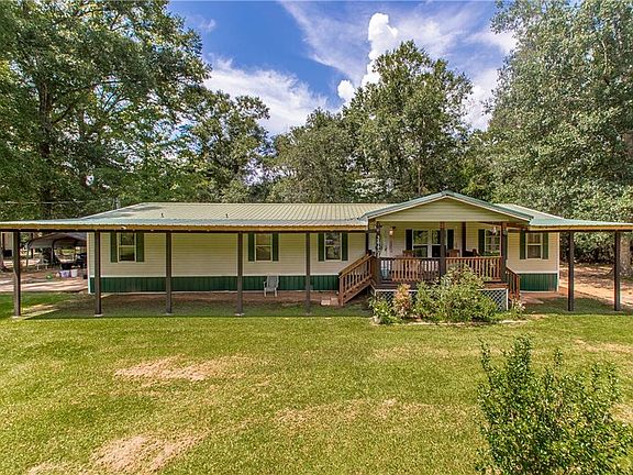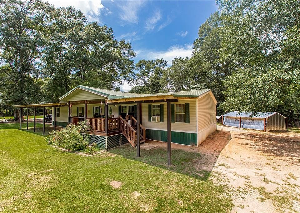 This well-maintained 5-bedroom, 3-bathroom mobile home offers beautiful country living on just under 2 acres, nestled at the end of a cul-de-sac. Upon entering, you're welcomed by a spacious living and sitting room combo that sets the tone for the home’s comfortable and inviting atmosphere. The split floor plan provides privacy, with a primary suite featuring a walk-in closet, soaker tub, and shower. Outdoor living is enhanced by a covered front porch and a back patio, perfect for relaxing and entertaining. The property also includes ample parking and an additional outbuilding equipped with electrical and a window unit, offering versatile use as a workshop or storage space. Located in a preferred flood zone, the property is high and dry; NO flood insurance is required. This home provides the perfect blend of space, comfort, and rural charm. Call today to schedule your showing!