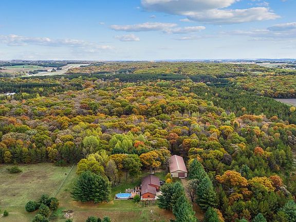 A envelope home with professional chef kitchens. Energy efficient.Less than 10 minutes from eau Claire, 10 min. from Menominee. Six acres w/two gorgeous kitchens and granite countertops. Thermador appliances, multiple ovens, hardwood floors, pantry, master suite, gorgeous decks, porch, solarium and pergola, surrounded by trees with garden, fruit trees & berries. Central air, privacy, wooded trails and a 120x40 outbuilding w/12 ft doors. The solarium heats this unique home through convection.