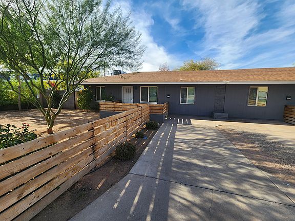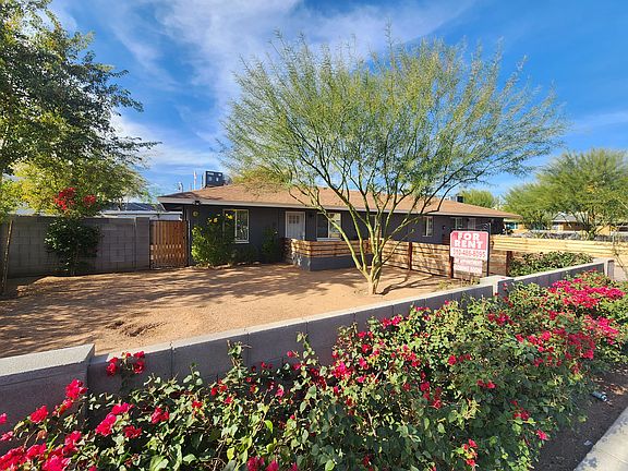 Recently renovated 2bd/1ba with large front yard, porch and secured back yard. Laundry room has a stackable unit which can stay or be removed for tenant's own washer and dryer. Tandem 2 car parking in front of unit. Utilities are separate, including water/trash (city of phoenix), electric (SRP) and gas (Southwest).