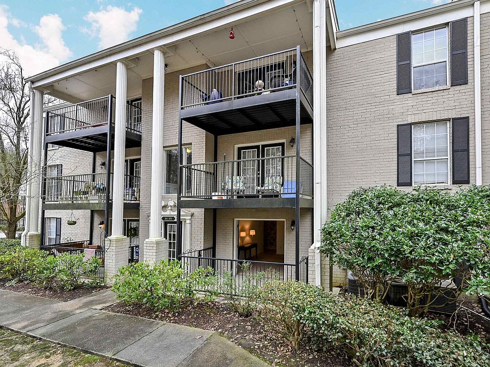 Perfect Location! Only minutes to Vinings Jubilee for shopping and Fine dining. Walking distance to Chattahoochee River Recreation Area where you will enjoy walking/jogging/bike trails, picnic area and more. Super convenient to Truist Park, The Battery, and easy access to 75/285. Essex House is a sought after impeccably maintained gated community located in the Heart of Vinings! Active HOA with many amenities pool, fitness center, tennis court, and dog park. Charming well maintained 1 bedroom/ 1 bath ground floor unit. French doors open to your covered patio with wooded green space view leading to peaceful stream. White kitchen cabinets, refrigerator remains, new stove. Butlers pantry and open concept dining area perfect for entertaining! Bedroom features walk-in closet. Washer/Dryer included. Welcome Home to Essex House where you will find mature landscaping, greenspace, and relaxing setting yet minutes to all the conveniences! Move in Ready!