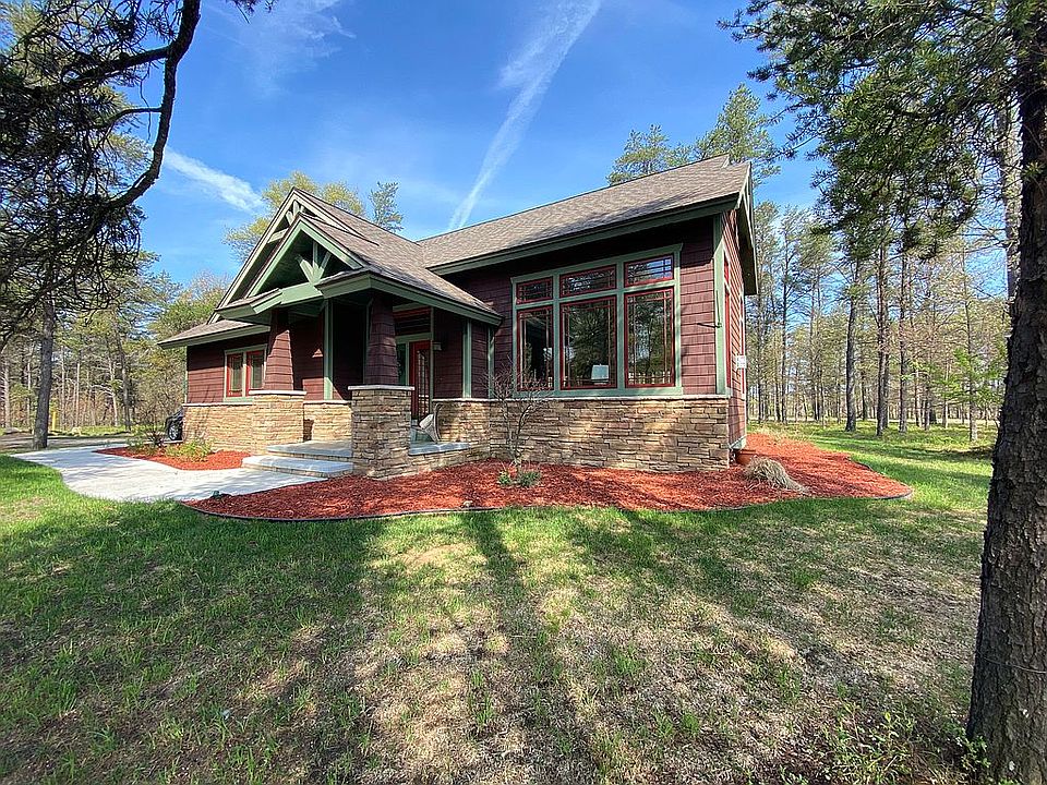 Forest Dunes, situated at the end of a cul-de-sac sits this 3 bedroom, 3 bath 2 story home with cedar shake wood exterior. Throughout the home you will find vaulted 14 FT ceilings in the great room with open staircase, extensive tile & hardwood floors, granite counter tops, walk-in pantry, lots of storage & closets, new front end loader washer & dryer, laundry tub in utility room, & freshly painted interior. Marvin window package valued at $60,000. Mostly finished rec room in the basement, rough plumbing for 4th bathroom in basement, finished garage, lawn irrigation system, & black top drive. Private micro-cell tower for cell service. HOA dues-$50 monthly- Gated community. Currently an AirBNB Superhost property generating enough revenue to cover cost of ownership. Selling because we relocated across the state.