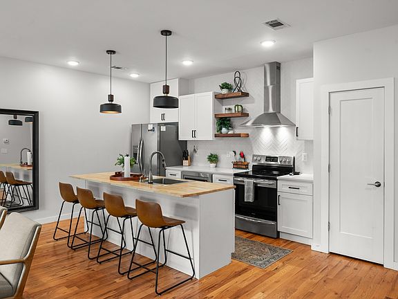 Live the Nashville lifestyle! This almost-new townhome in a boutique community of just 20 homes puts you just minutes from the city’s best dining, nightlife, Farmers Market, and downtown attractions like Bridgestone Arena and the Sounds’ stadium. Enter a bright, open-concept kitchen with a large island that seats four, stainless steel hood vent, and a stunning mix of cabinets and wood open shelving—perfect for cooking, entertaining, or just hanging out. The primary suite is a retreat with elegant wainscoting on the accent wall, while the spa-like primary bath features a frameless glass shower, floor-to-ceiling tile, and an overhead rainfall showerhead. Enjoy the oversized two-car garage, extra guest parking, and negotiable furniture. Previously rented at $2,700/month, this home is ideal as a turnkey investment or your stylish city residence. Rare opportunity to own a modern, move-in ready Nashville townhome for under $400,000!