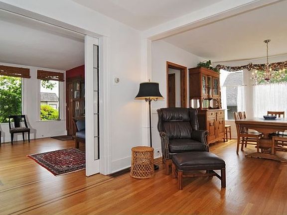 Classic 1902 farmhouse sited on an exceptionally beautiful large lot, lovingly cared for for 30 years & featuring mature plantings, roses & fruit trees. Formal dining, updated kitchen w/French doors opening to private deck & garden. Truly special.