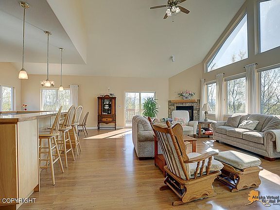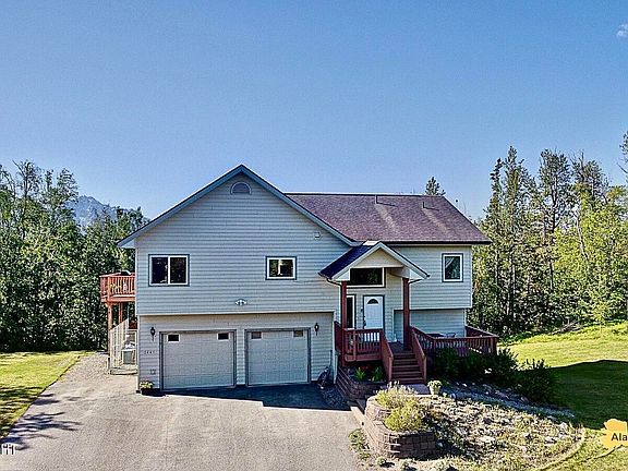 Welcome home to beautiful Snowgoose Pond! Enjoy the spectacular views of the Chugiak and Talkeetna Ranges from every window! The private 2.65 acres, landscaped yard and decks are nice for enjoying the Alaskan summers! Wonderful open concept living area with vaulted ceiling, 3 bedrooms, 3.5 bathrooms, an office, and a fully furnished efficiency apartment. The apartment gives a private space forguests or potential BnB. There is a 3 car tandem garage with workshop area and paved RV parking. The central location is great for commuting. Close to Palmer, Wasilla, UAA college, and hospital. Community parks and trails nearby. Easy access to Hatcher Pass and Govt. Peak recreation!
