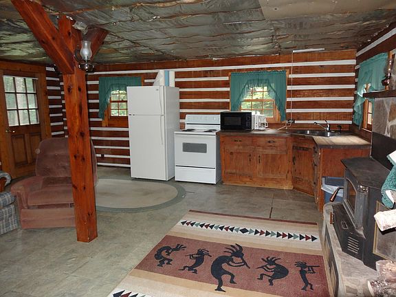 Second Creek- 84+/- acres with unique 2 story 1BR, 1BA log cabin over basement offers, a large living room with beautiful rock fireplace and wood burning inset, large BR and full bath. A second cabin overlooks a stocked pond and features 2BR, 2BA and an unfinished basement with fireplace. Both homes offer propane forced air and wood heat. Very private and secluded. Lots of wildlife.