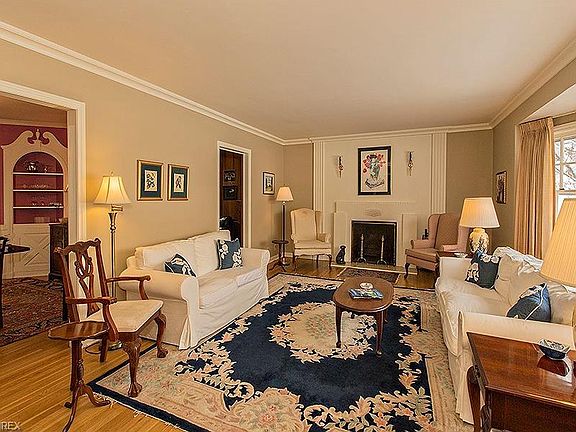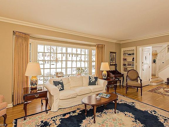 Handsome, centrally-air conditioned, architecturally designed, 4 Bedroom 3½ Bath white brick colonial with large Living Room with huge picture window, crown molding and wood burning fireplace. Dining Room has built-in corner china cabinets and French Doors to Long Family Room along the back of the house. Eat in Kitchen .... all appliances stay. Beautifully paneled study (or Computer Room). 3 big bedrooms on second floor (Master Suite with Bedroom and Full Bath) with 2 Baths. Third floor has Bedroom and Full Bath. Lower Level Paneled Rec Room has never-used fireplace and wet Bar, has been B-Dryed. Furnace replaced in 2016! This house has it all, and has been well-maintained since purchased. Close to Thornton Park, schools, shopping and restaurants. Just minutes to the Rapid Transit downtown where the Cavs and Indians play (win); 20 minutes to Cleveland Clinic, University Hospitals.