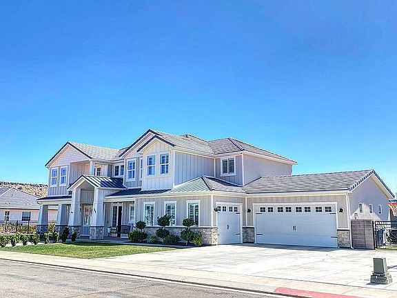 Located in Dixie Springs, this property enjoys a community that is perfect for side-by-side UTV enthusiasts as well as boaters and lake-goers. Sand Hollow reservoir sits less than 1 mile from this home. Located on a cul-de-sac street with very low traffic and great neighbors! The excellent finish work in this craftsmen style home, coupled with the layout of its upper floor, make it unique. A VSSL sound system allows users to airplay to a series of rooms with ceiling flush-mount speakers installed. Play any audio from your cellphone and control each room for volume and content. Fully functional theater room with Dolby Digital Plus 5.1 surround sound for a fully immersive experience. UHD projector and media HUB make viewing easy and fast. This room also includes specific climate control via Mini-Split remote to make sure guests are comfortable with perfect temperature adjustments without the need to leave your seat. Central Vacuum System with the main vacuum line retracting in-wall and 4 additional ports including one in garages. All countertops throughout the house are solid quartz. Water softener unit keeps appliances looking nice and clean and easy to access for salt pellet refills. Lots of driveway with quality anchored basketball standard. Features a 72” glass backboard and breakaway rip. Gas struts assist making the raise and lower function easy enough for a 5 year old.
