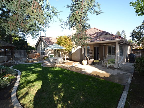 This N/W Fresno home is immaculate and move-in ready! The kitchen features granite tiles, stainless appliances, oversized sink and eating bar. The open concept flows out to a dining nook and a great room with vaulted ceilings, exposed beam and lovely energy efficient gas fireplace. A formal dining room with lots of windows provided extra entertaining space. The home also features plantation shutters and gorgeous hardwood floors! One spare bedroom includes a lovely window seat and the second spare room includes vaulted ceilings. A spare bath includes dual sinks and lots of storage. The master suite showcases a huge window, vaulted ceilings and a walk-in closet with custom organizer. The master bath has dual sinks, walk-in shower and a soaking tub. The back yard oasis features mature landscaping, green space, a covered patio and additional entertaining space. A soothing rock waterfall with creek leads to a gazebo/spa. This home is the perfect choice!