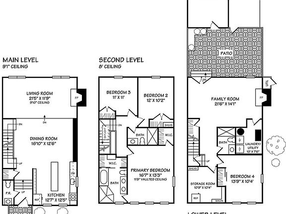 Wonderful End Unit Townhome in the Cloisters. with 3 finished Levels., new Pella Windows throughout and Hardwood floors. The First Level is complete with a recently updated Kitchen that opens to the Dining Room. The Kitchen offers white and gray cabinetry with a center island that seats 3 and a beautiful stone countertop, of course the appliances are stainless and there are three windows that bring is so much light. Moving into the Dining Room there is lots of space for dinner parties that could seat 10-12-- which opens in the brightly lite Living room with Wood burning fireplace. The entire first floor flows seamlessly together providing great space. Also included is a coat closet and separate powder room. The elegant stair case takes you to the Skylight lite 2nd floor landing. The Master Bedroom is spacious with a vaulted ceiling and offers 4 windows, 2 walk in closets with Elfa shelving and a newly updated ensuite bath with separate tub and shower and two sinks, Bedrooms 2 and 3 are large and both have double closets. Full bath 2 is updated with a shower and vanity. The Lower Level is fully finished and has french doors to the patio that brings the light in..... There is a Rec Room with a stone surrounded wood burning fireplace and Luxury Vinyl Plank flooring. Bed room 4 offers great light and has a large closet. Full bath 3 has been updated. There is a separate Laundry and storage area. The Lower Level Lives like a second floor family room because there is so much natural light. The back Patio recently upgraded to Brick is a wonderful place to grill and dine and then lounge under the lights. There is access to the detached garage with electric door and the separate parking space.