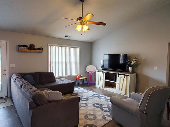This immaculate 3 bedroom, 2 bath ranch home with brick front and stone detailing is located on the north side and offers an open floor plan. The foyer with coat closet opens to the great room with soaring ceiling and access to the patio overlooking the fenced backyard with new huge concrete patio . This great home offers an eat-in kitchen with an abundance of cabinetry, stainless steel appliances, and pass through to the great room. The master bedroom offers a large walk-in closet and a master bath that has been totally updated it has a large stand up shower . This split bedroom design offers two additional bedrooms with access to the full hall bath. The laundry with shelving is conveniently located off the 2.5 car garage. This great home is move-in ready and conveniently located close to schools, shopping, dining and churches .