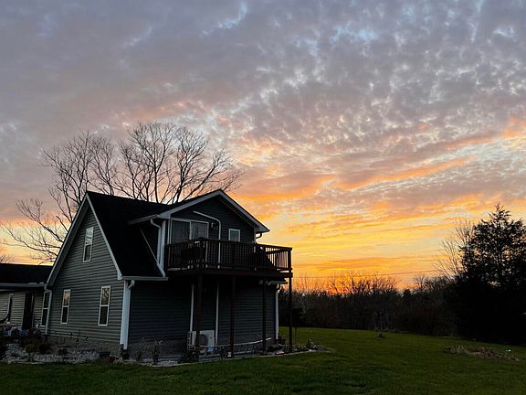 Back On Market NO Fault Of the SELLER. Panoramic views no matter which way you look. If you look to the East you see the foot hills towards the Red River Gorge, look to the West and you get magnificent sunsets. Custom gourmet kitchen with 3/4 inch oak cabinets, granite countertops, Cali Bamboo floors, large pantry, recessed refrigerator, Rev-a-shelf pull outs, large kitchen island with deep farm sink for gardening, and kitchen bar. Kitchen has double corner window facing South East that does not disappoint. Hardwood floors throughout home. Private primary bdrm with walk out second story deck overlooking farm. Additional two bdrms and laundry rm on first floor. Buck wood burning stove in upstair fireplace. Below grade has potential space and rec room area. Entire house is ZONED Mini Splits. See sellers disclosure for details. Two large barns with underground utilities ran, water and electric. Farm is 6 mostly fenced acres. Pond behind barn and small creek down in the woods. Perfect for hunting deer, bobcat, wild turkeys, quails. Wild life is plentiful. Seller is a licensed Realtor. Spectrum Fiber at Rd. MLS # 23012089 listing has additional acreage for sale with house. 29.9 acres
