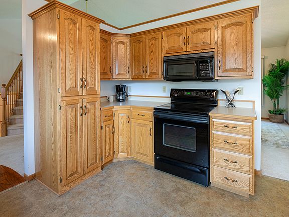 Come see this 5 bed, 3 bath home in a desirable NW Bismarck neighborhood! Walking through the front door you'll be greeted by a vaulted ceiling and plenty of windows allowing in an abundance of natural light. The kitchen features plenty of cabinets, a pantry, a peninsula with plenty of seating, and a kitchen dining space. There's also an adjoining formal dining room with a built-in hutch and it opens up to the cozy living room with a gas fireplace.