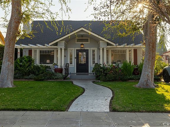 Historic Wood Streets Cottage with Modern Upgrades! This beautifully upgraded 3-bedroom, 2-bathroom cottage-style home, built in 1922, offers 1,714 sq. ft. of living space on a 6,534 sq. ft. lot in Riverside’s highly desirable Wood Streets neighborhood. Recognized as a Riverside Historic Structure of Merit (CHM808), the home blends timeless character with modern conveniences. Constructed primarily of Redwood, it welcomes you with a front covered porch and original oak wood floors. The living room showcases a gas fireplace with custom mantel, flanked by original built-in bookcases, and a Chicago tile hearth that highlights the home’s historic charm and demands to be appreciated.