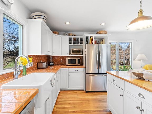 Wonderful modernized 4 bedroom farmhouse style home on a very private setting with close proximity to downtown Harbor Springs and no city taxes. The main floor features a master suite, large living room with wood stove, wood floors throughout, a main floor den/office, recently remodeled kitchen with hearth room area. Upstairs there is a large common area, great for an upper family room/entertainment or study area, along with 3 bedrooms and a full bath. Two car garage has an upper storage area that could possibly be converted into living space. Enjoy peace and quiet and your own piece of paradise on the beautiful flagstone patio surrounded by lilacs. Large completely fenced in back yard area with apple & pear trees, honeysuckle, and grapevines, along with multiple useful outbuildings including a 30x18 shed!