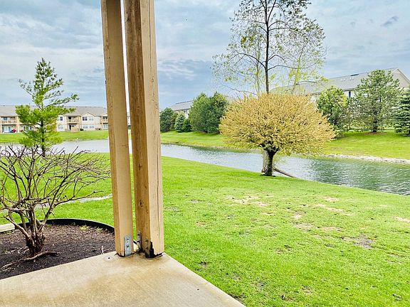 Just enough and not too much! This 2 bedroom, 2 full bath, 1 car attached garage condo is a first floor unit tucked away inside Cobblefield Condo Association next to Turnberry Park and positioned on the pond. The unit offer an open concept floor plan with large eat-in kitchen with oversized bar overlooking the great room with cathedral ceilings, corner gas log fireplace and views of the pond. It has a covered patio off the great room The unit offers all the kitchen appliances and newer washer and dryer and electric garage door opener. As well as a flooring allowance of $3,000. Condo fees are $190 per month an cover exterior maintenance, lawn-care, insurance, garbage and snow removal, pool and club house and care of the ponds.