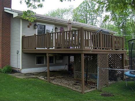 Sharp 3 BR home with nice country setting & mature trees located in Bell addition. Features open kitchen with oak cabinets & island / bar, updated appliances, wood flooring in kitchen & dining area, spacious formal living room, family room with built-in cabinets & stone fireplace, mini-bar with beverage refrigerator, multi-level deck with fountain, fenced back yard, above ground pool, & well landscaped yard!