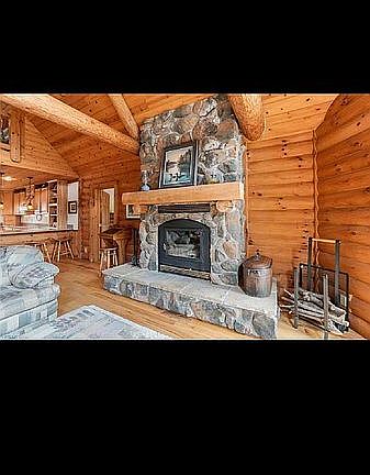 Beautiful log home. 18+ acres, new pond, extra well/septic/moble home foundation. 2 bedroom/possibly 4 bedroom. New roof, geothermal heat, fireplace, 700 ft asphalt driveway, full bar, pool table, new massive deck with duel hot tub/swim spa, gym with equipment and sauna( needs finished). About 5 acres of fields and 13 acres of woods. 740.319.2132