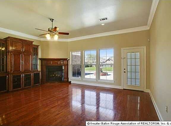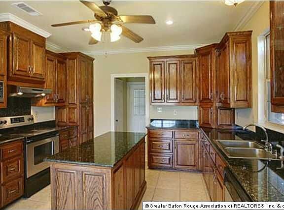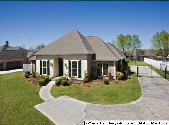 3 bedrooms, 2.5 baths, kitchen with granite counters, island, appliance garage, oak cabinets and great breakfast area. Dining room has built desk area that could be used as office instead of dining room. Master bath has separate shower, whirlpool tub and separate closets. Wood floors in living area/dining, tile in kitchen and baths and Prego wood floors in other areas (no carpet in house). You'll stay cool with the 2 HVAC units that are zoned for lower utility costs. Large backyard is secure with wrought iron double gate at driveway and patio with fountain. House has post tension slab and extra foam insulation in outside walls and security system!