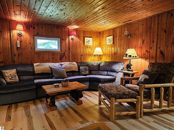 Here is the up north getaway you have been looking for! Close to AuSable River, ORV and snowmobile trails and public land. This 2 bedroom- one bath cabin is ready to be your base camp. Cozy knotty pine interior with new flooring throughout, newer furnace and additional insulation has been added to the attic. One and a half car garage for all your storage needs and roomy yard with chain link fence around three sides. Currently being used as a short term rental with game room in garage.