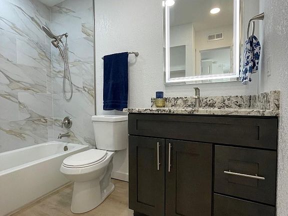 Completely updated 2 Bed 1 Bath Condominium. Custom cabinets in kitchen, bath, and laundry room. Custom tile, high end granite counter tops. New energy efficient windows and sliding door. High end waterproof LVP flooring. New paint, no carpet to clean! Brand new stainless steel appliances, stove with hood. Open concept, storage closets, and in unit laundry room with space for more storage! Slight mountain views. Close to shopping and restaurants. Easy access to major highways.