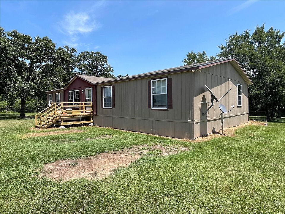 Perfect balance of quiet country living with quick access to IH-45. This park-like property is the perfect balance of open with scattered trees for shade. Completely field wire fenced to keep wild critters out or tame critters in. The automatic gate makes entrances and exits during bad weather a breeze. The is also an additional concrete slab to either park on or build a shop or garage. Make this place your weekend getaway or bring the family and make it your permanent home.