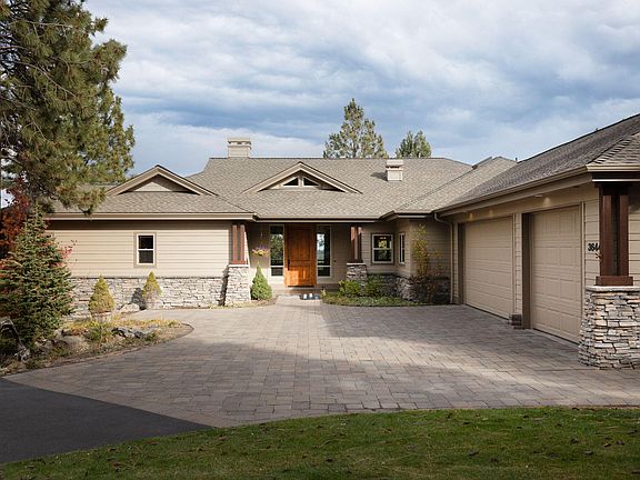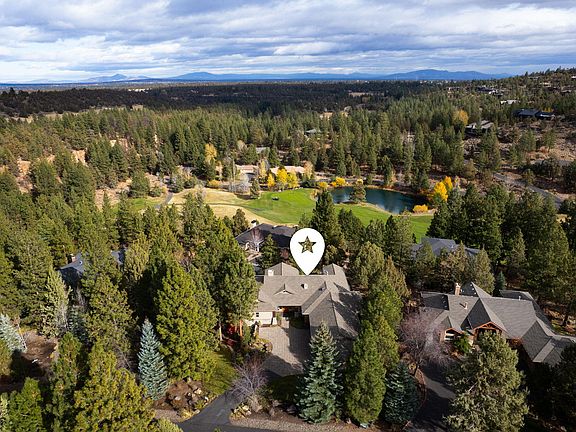 This stunning 3,482 sq. ft. home is located in the highly desirable Awbrey Glen community, offering an idyllic setting surrounded by majestic pines, overlooking the 12th fairway, as well as stunning vistas to the east and northeast. The spacious, thoughtfully designed layout features 3 bedrooms, 3.5 bathrooms, and is perfect for both everyday living and entertaining. The open-concept design includes a gorgeous kitchen, complete with built-in cabinetry throughout the home for added convenience and style. A wet bar with a wine fridge upstairs is ideal for hosting guests, while the full bonus room downstairs offers even more space, including a separate bedroom and full bath for added privacy. For wine enthusiasts, the home boasts a temperature-controlled, 600-bottle wine cellar just off the bonus room, perfect for storing and showcasing your collection. The home is also equipped with newer heating units and dual air conditioning systems, ensuring optimal comfort throughout.