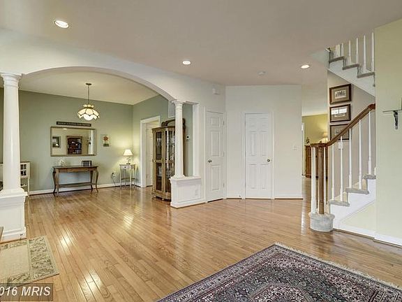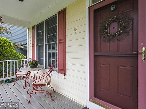 Charming 3 BR/3.5 BA home w/ porch on green space. 2,671 sf on 3 fin levels, open floor plan, hrwds, archways, columns. Gourmet Kit w/ breakfast bar, stainless, FR w/ gas FP, access to deck. Formal LR & DR. Owner's Suite w/ tray ceiling, spa BA, WIC. Fully fin walk-out LL w/ Office, FB, Rec Rm, Bar. Fenced rear yard w/ paver patio. Detached 2-car garage. Solar panels. Across from comm amenities.