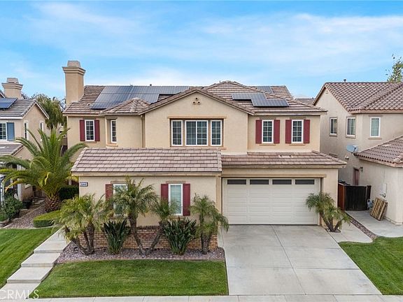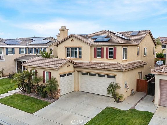 Looking for a spacious and comfortable family home in Beaumont? This beautiful home is located in a gated community with 24 hour security, in a cul-de-sac, walking distance from the lake, golf courses, Tournament Hills Elementary School, and a short drive to shopping centers, freeway access, and restaurants. The home is a stunning 4 bedroom and 3 bathroom home, boasting over 3500 sq ft of living space across two stories. With plenty of room for the whole family to spread out and relax, this home is perfect for those seeking a peaceful and tranquil lifestyle in one of Beaumont's most sought-after neighborhoods. Step inside to discover an inviting and spacious interior, complete with high ceilings, elegant floors, and plenty of natural light. A bedroom downstairs, an office, along with a spacious living area provides the perfect setting for family gatherings, while a well-appointed kitchen offers all the modern amenities you need to whip up delicious meals. Upstairs, you'll find three generously sized bedrooms, including a luxurious primary suite with a spa-like ensuite bathroom and plenty of closet space. Outside, the property features well-maintained landscaping and beautiful curb appeal, ensuring that you'll be the envy of the neighborhood. Enjoy nearby lakes, parks, schools, and shopping centers - all within easy reach of this fantastic home. This home also features 24 solar panels that overproduce electricity, allowing you to save money in your energy bill!