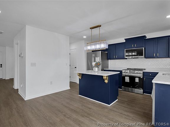 Step into timeless living at, 3645 Ambition Rd, a beautifully renovated 4-bedroom/2.5-bathroom home. From first step, Beach Cottage Oak Luxury Vinyl flooring run throughout the floorplan, padded carpet in the bedrooms for comfort, and Nouveau Flora Porcelain decorated tile accenting the laundry room. Unique fixtures are centered around the elegant dining room and kitchen which are surrounded by contemporary colors of naval blue and white, with gold accents. The kitchen also includes granite countertops and new top-of-the-line stainless steel LG appliances. Upstairs you will find 4 spacious bedrooms, 2 bathrooms, plus a large laundry room w/separate linen closet. This home is located in one of the most convenient subdivisions in town just minutes from Fayetteville Regional Airport, I-95, and local shopping amenities. Buyers will easily appreciate short commutes to Fort Liberty and downtown Fayetteville.