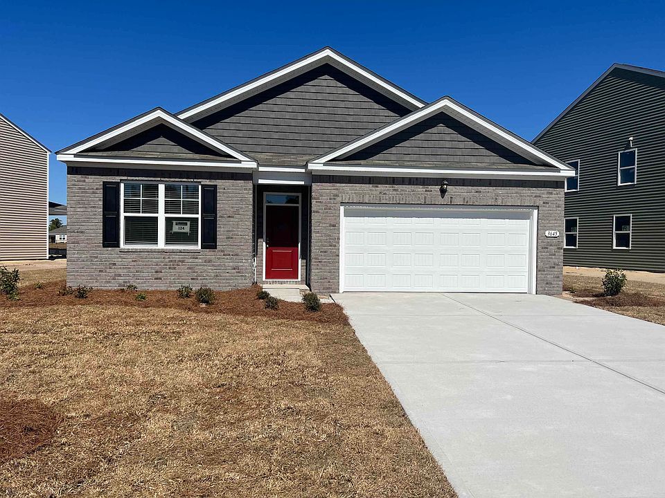 Perfect location 10 minutes to Ocean Drive and Windy Hill Beaches. Our Cali plan is the perfect one level home with a beautiful, open concept living area for entertaining. The kitchen features granite countertops, an oversized island, 36" gray painted cabinets, a walk-in pantry, and stainless Whirlpool appliances. The large owner's suite is tucked away at the back of the home, separated from the other bedrooms, with a double vanity and 5' walk-in shower in the private master bath. Low maintenance laminate flooring gives the look of wood with easy care and cleanup! Spacious rear porch overlooking the pond adds additional outdoor living space. All bedrooms and family room are pre-wired for cable and ceiling fans. Ask about our Home Is Connected smart home package! *Photos are of a similar Cali floorplan. (Home and community information, including pricing, included features, terms, availability and amenities, are subject to change prior to sale at any time without notice or obligation. Square footages are approximate. Pictures, photographs, colors, features, and sizes are for illustration purposes only and will vary from the homes as built. Equal housing opportunity builder.)