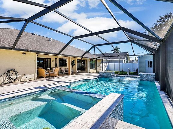 Welcome to 3645 Cartwright Ct, an incredible opportunity to own a home in one of the most desirable locations in Bonita Springs WEST of US-41 and just a short distance to both Bonita Beach and Barefoot Beach. This property combines an unbeatable location with major updates and upgrades, making it a perfect choice for full-time residents, seasonal owners, or investors looking for excellent income potential. The highlight of this property is the complete outdoor renovation completed in 2020, designed to maximize comfort, style, and the Florida lifestyle. The backyard is truly a private retreat with southern exposure, an oversized pool and spa, a new pool cage, and elegant travertine flooring throughout the lanai and deck. Whether you’re entertaining guests, enjoying quiet evenings, or soaking up the sun, this space is the centerpiece of the home. The six-foot privacy fence adds seclusion, while the spacious backyard provides plenty of room for pets, gardening, or additional outdoor living. Additional property features include a 12 x 12 storage shed (2019), offering exceptional storage for bikes, beach gear, or tools. Recent major upgrades provide peace of mind, including a new AC (2022), electric storm shutters on the lanai (2021), and impact-resistant garage doors and windows for enhanced storm protection and energy efficiency. These improvements make the home move-in ready and low maintenance. Inside, the home features tile and vinyl flooring throughout, offering a clean and low-maintenance design. The primary bathroom has been beautifully updated with dual vanities and a modern layout, creating a comfortable retreat for everyday living. The flexible floor plan offers natural light and inviting living spaces, ready to accommodate your personal touches. One of the most attractive features of this property is the NO HOA fees—giving you full flexibility for personal use or rental opportunities. Investors will appreciate the strong income potential due to the home’s close proximity to world-class beaches, shopping, dining, and entertainment options. Residents will enjoy the everyday convenience of being near local restaurants, boutiques, grocery stores, and outdoor recreation such as boating, fishing, and kayaking. With quick access to major roads, commuting to Naples, Estero, or Fort Myers is seamless.