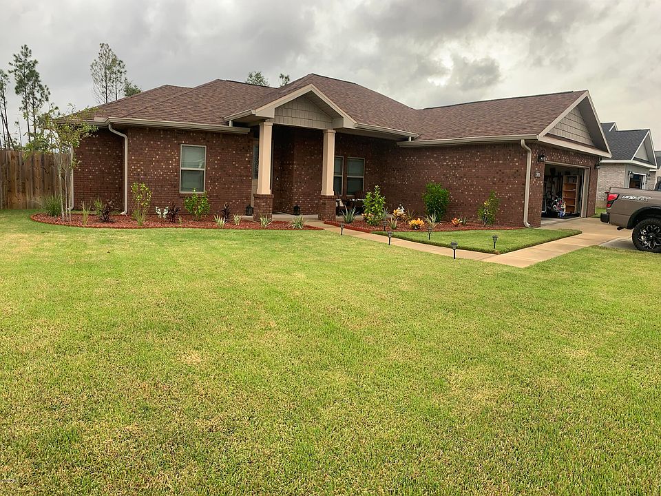 4 bedroom-2 bath-Tray ceilings in the Great room and master. Crown molding in the main living area, Wainscot in Foyer and dining, laminate flooring, tile and carpet all Brick exterior, vinyl soffit, Custom cabinets, Granite counter tops in kitchen and bath, Tile Back splash in Kitchen,Stainless steel, top of the line upgraded appliances, Upgraded Bronze plumbing fixtures, Distinctive light fixtures and fans in all bedrooms,Recessed lighting Tiled shower and garden tub in Master Double vanity in Master bath,Designer mirrors in baths, Totally landscaped with Irrigation system. Updated rack systems in closets, upgraded carpet & padding in master bedroom, AND a triple drive along with the 2 car garage. Easy access to TAFB and the Worlds Most Beautiful beaches
