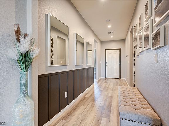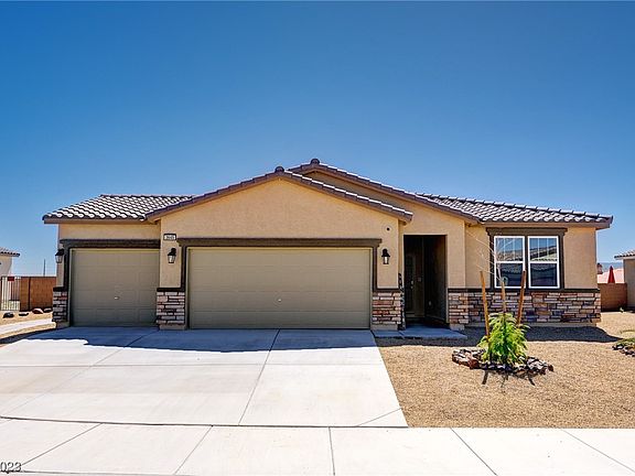 Take a look at this stunning single story home in the Pahrump, 89061 area! Beautiful desert landscaping in the frontyard for a clean look, and easy maintenance. As you walk in, you are greeted with a beautiful, long entryway. Open floor plan, neautral walls, and custom light fixtures. This home has been well kept, and taken care of by proud owners. 4 bedrooms, 2 full bathrooms, and a huge walk in closet in the primary bedroom. The 3 car garage comes with finished walls and epoxy flooring. As you walk out to the backyard, there is an abundance of space for hanging out, or entertaining. Real grass surrounds the backyard, along with a corner designated with pavers to truly make it your own space. Come schedule a showing today to see what else this beautiful home has to offer!