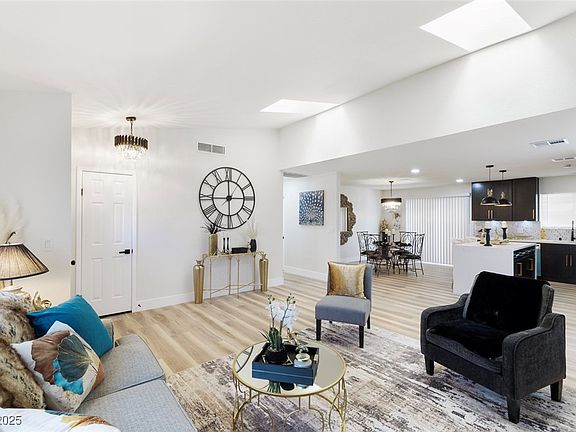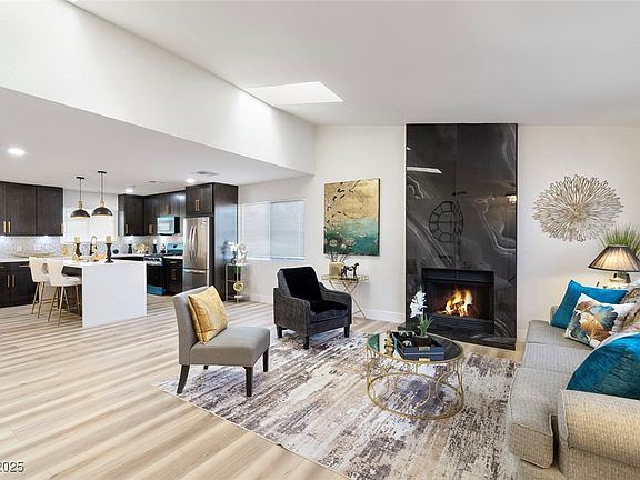 ABSOLUTE STUNNER-amazing-DESIGNER MINI MANSION HOME will take your breath away! NEW NEW NEW! CUSTOM CARREA QUARTZ counters, huge breakfast bar w/pendant lights, BIG KITCHEN w/CUSTOM CHARCOAL CABINETS, modern brushed gold handles, soft close drawers. STAINLESS APPLIANCES (inc. fridge),under cab lights, UNDER-MOUNT FARM SINK, CRYSTAL Chandeliers, light ASPEN vinal/wood floor, MASTER BEDROOMS W/BATH-walk in shower-STUNNING PORCELAIN TILE, LUXURIOUS BOWL TUB W/CHANDELIER, 2 tone paint, BIG ROOMS, BARN DOOR, LUXURY VINAL PLANK THROUGHOUT, walk in closet, CAN lights, HUGE LIVING ROOM OPEN FLOOR PLAN! WOOD BURNING FIREPLACE w/STUNNING tile! 2 FULL BATHS! New bathroom cabinets white shaker soft close doors, NEW black undermount sinks. DESIGNER TILE IN BATHS! BIG lot over 6970 sq ft., NEW PAINT! 5 in. baseboards, blinds, Epoxy garage floor, BACKYARD with turf and covered patio! New doors! The list goes on & on! DREAM HOME AT GREAT PRICE! EXCELLENT LOCATION Close to LV strip!
